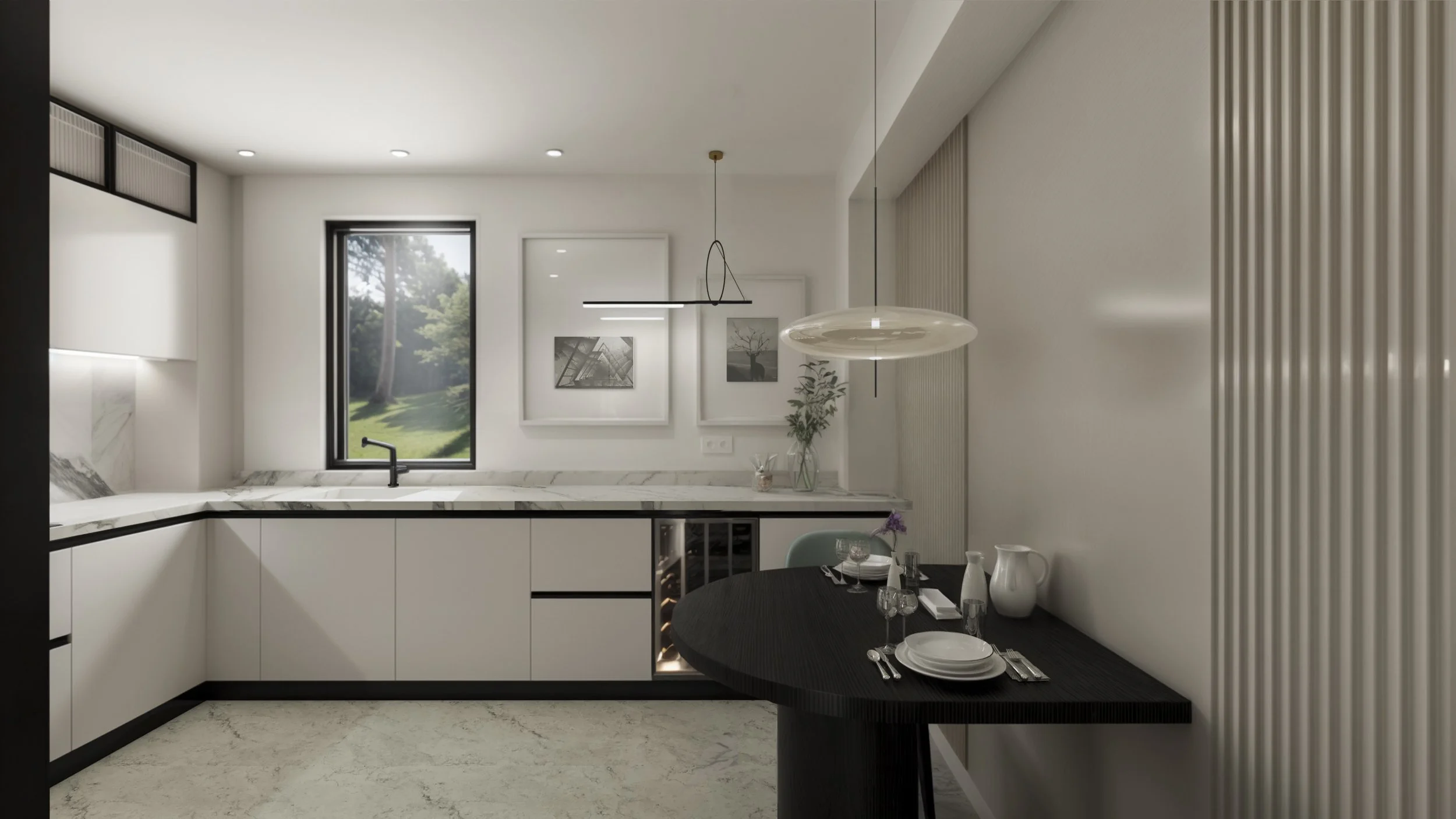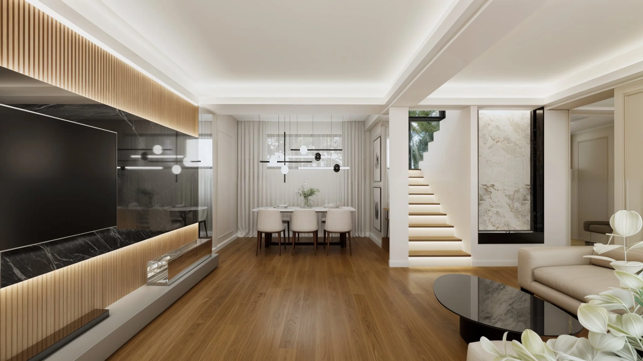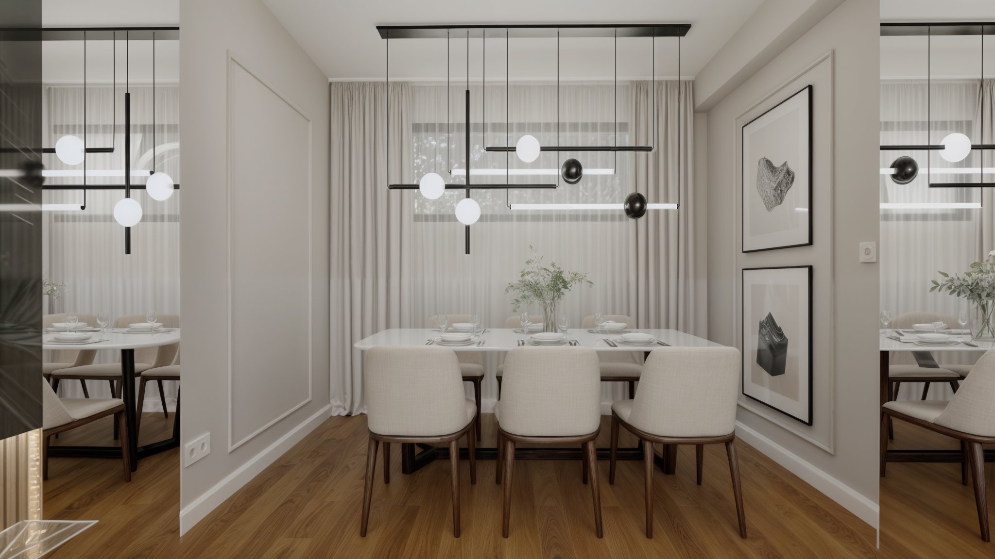 Acest proiect de design interior a fost conceput pentru o locuință unifamilială situată în zona de nord a Bucureștiului, cu scopul de a crea un ambient cald, sofisticat și perfect funcțional. Stilul abordat este unul contemporan cu accente minimaliste și influențe naturale, în care finisajele premium, paleta cromatică neutră și texturile atent alese creează un echilibru între eleganță și confort.